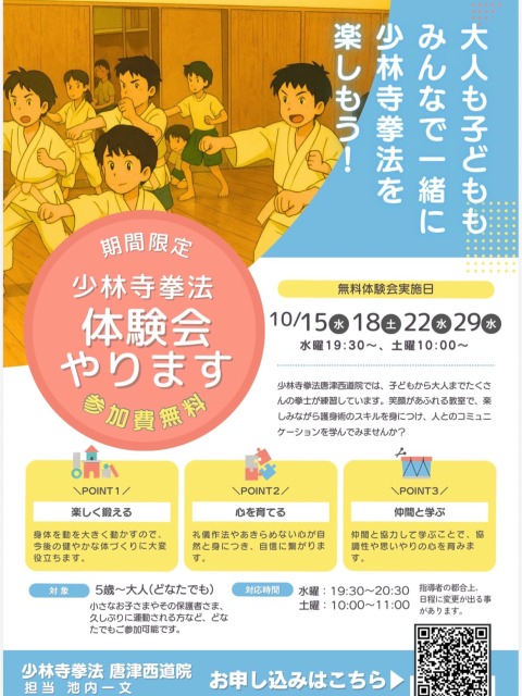 子供も大人も、みんなで一緒に少林寺拳法を楽しみましょう!!